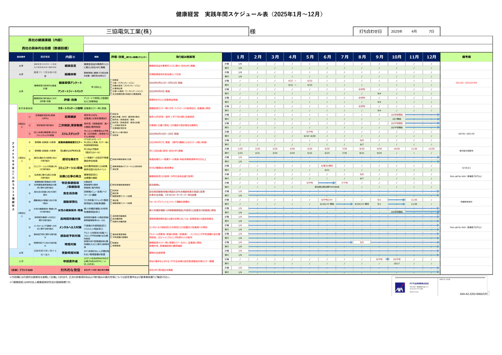 2020年より健康経営の取り組みを実施しており、今後も継続して従業員の健康づくりを通して、従業員のモチベーションの向上、働き方への意識向上に取り組んでまいります。